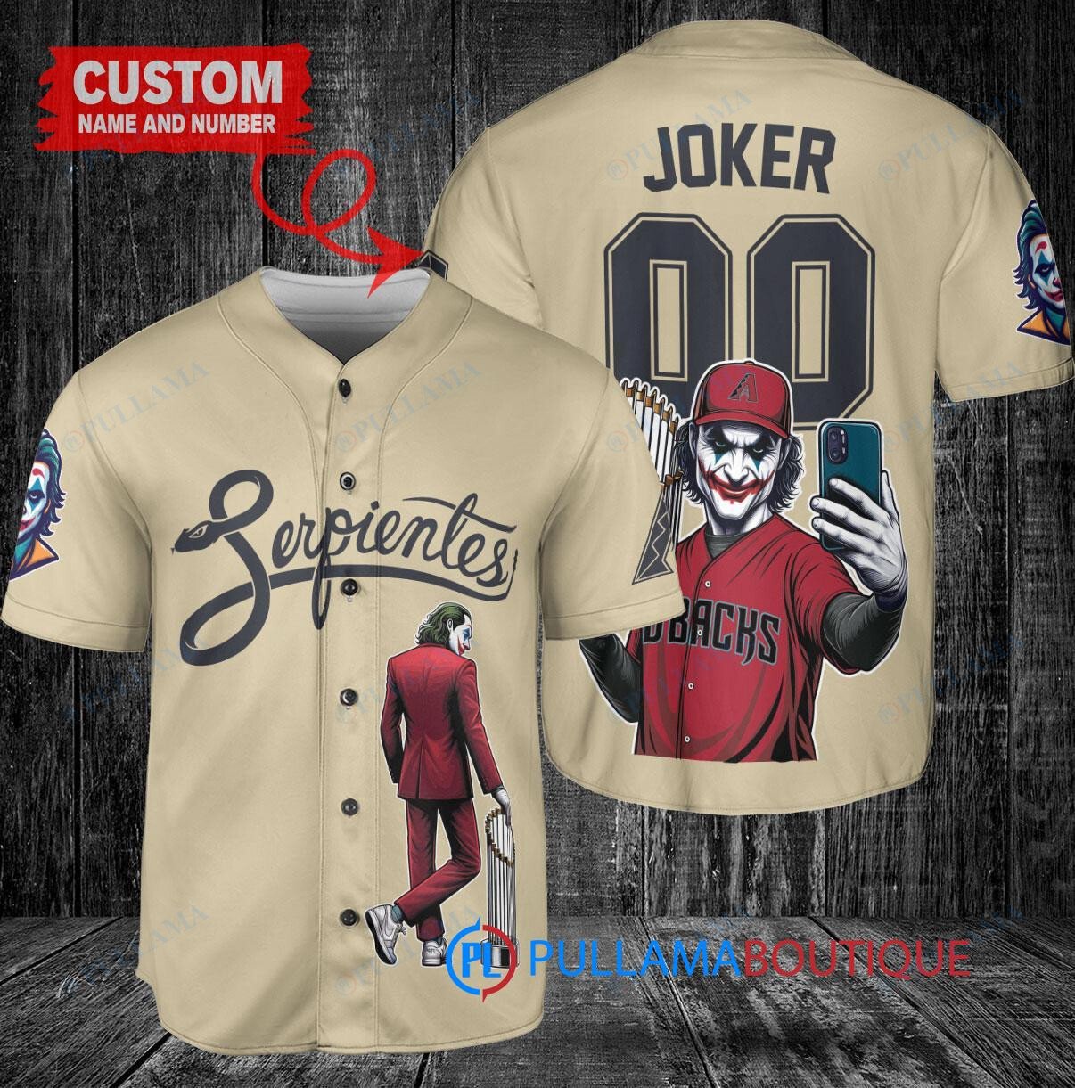 Show off your love for the Arizona Diamondbacks and the Joker from DC Comics with this custom baseball jersey in sand color. The jersey features a unique design with the Joker holding a trophy, perfect for fans of both the team and the iconic comic book character. Made with high-quality materials, this jersey is perfect for wearing to games or just showing off your fandom. Get yours today and stand out from the crowd!