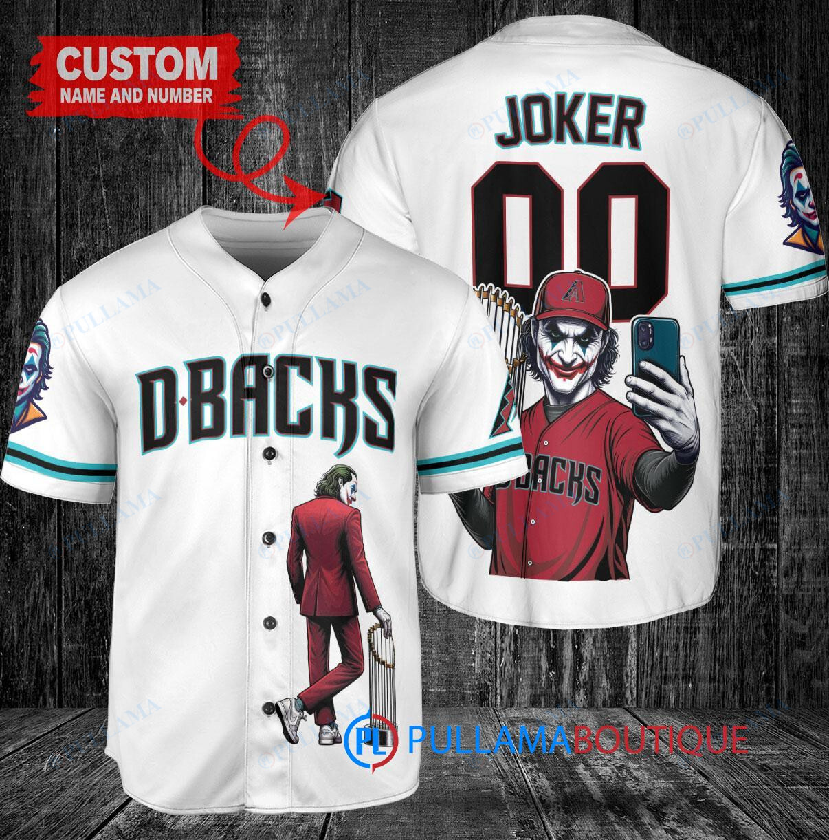 Show off your love for the Arizona Diamondbacks and the Joker from DC Comics with this custom baseball jersey. The white jersey features a unique design with the Joker holding a trophy, perfect for any fan looking to stand out. Made with high-quality materials, this jersey is a must-have for any baseball and comic book enthusiast.