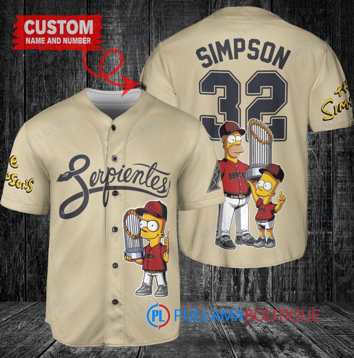 Arizona Diamondbacks x The Simpsons Bart Simpson, Homer Simpson with Trophy Custom Baseball Jersey Sand
