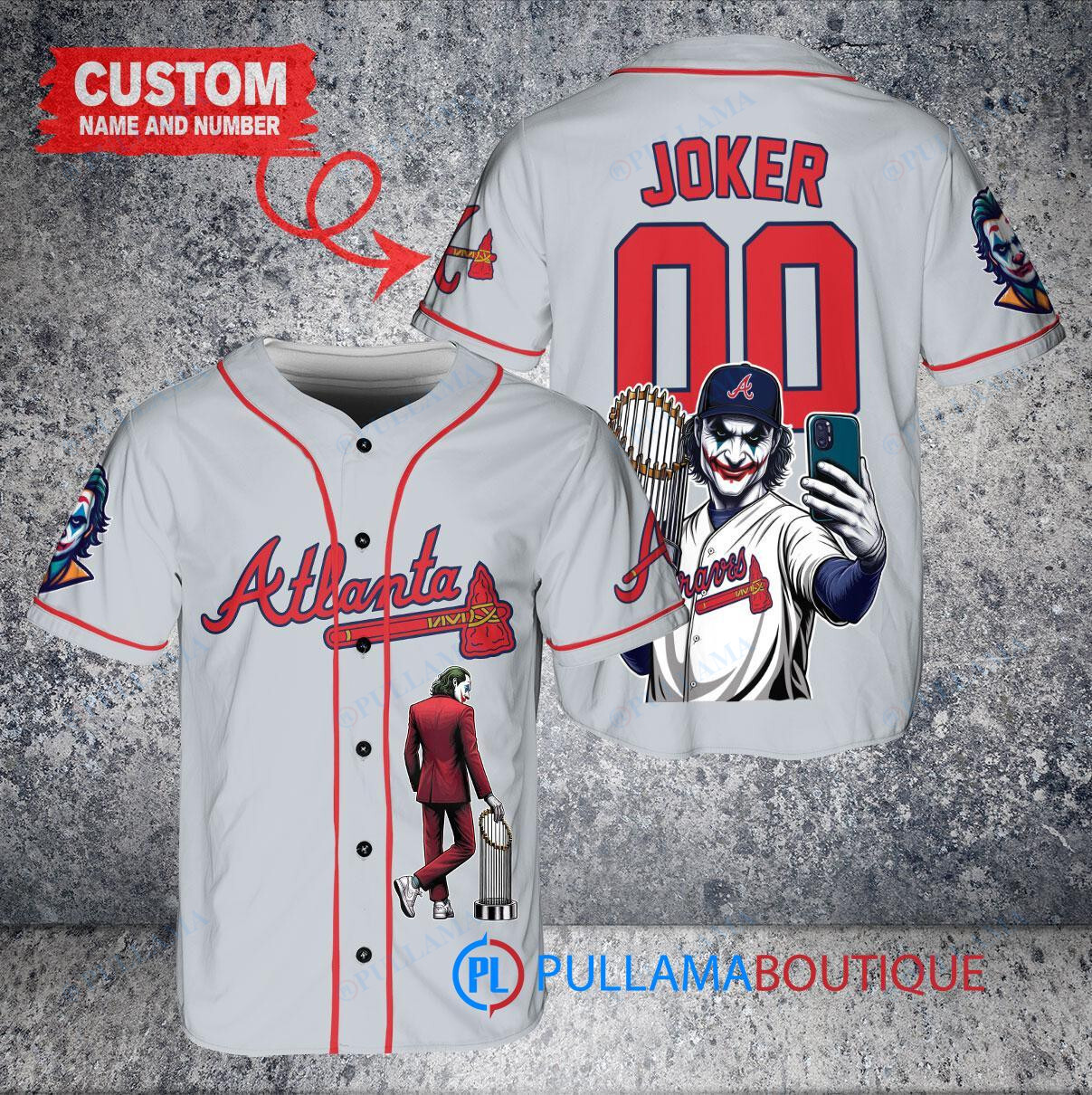 Atlanta Braves x Joker DC Comics with Trophy Custom Baseball Jersey Gray