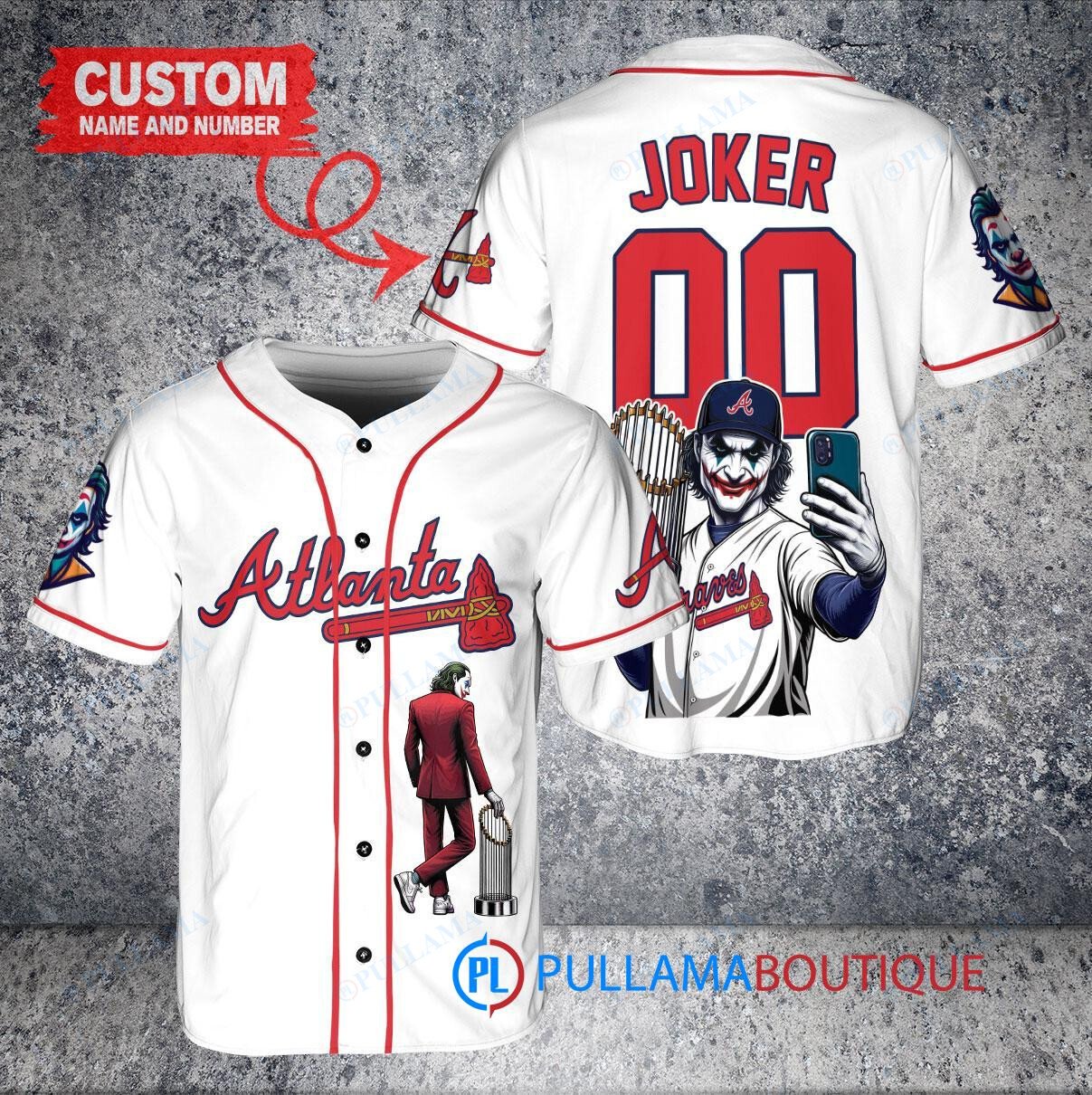Atlanta Braves x Joker DC Comics with Trophy Custom Baseball Jersey White
