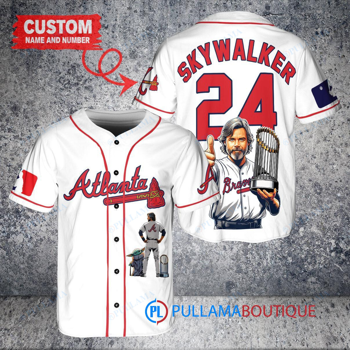 Atlanta Braves x Luke Skywalker Star Wars with Trophy Custom Baseball Jersey White