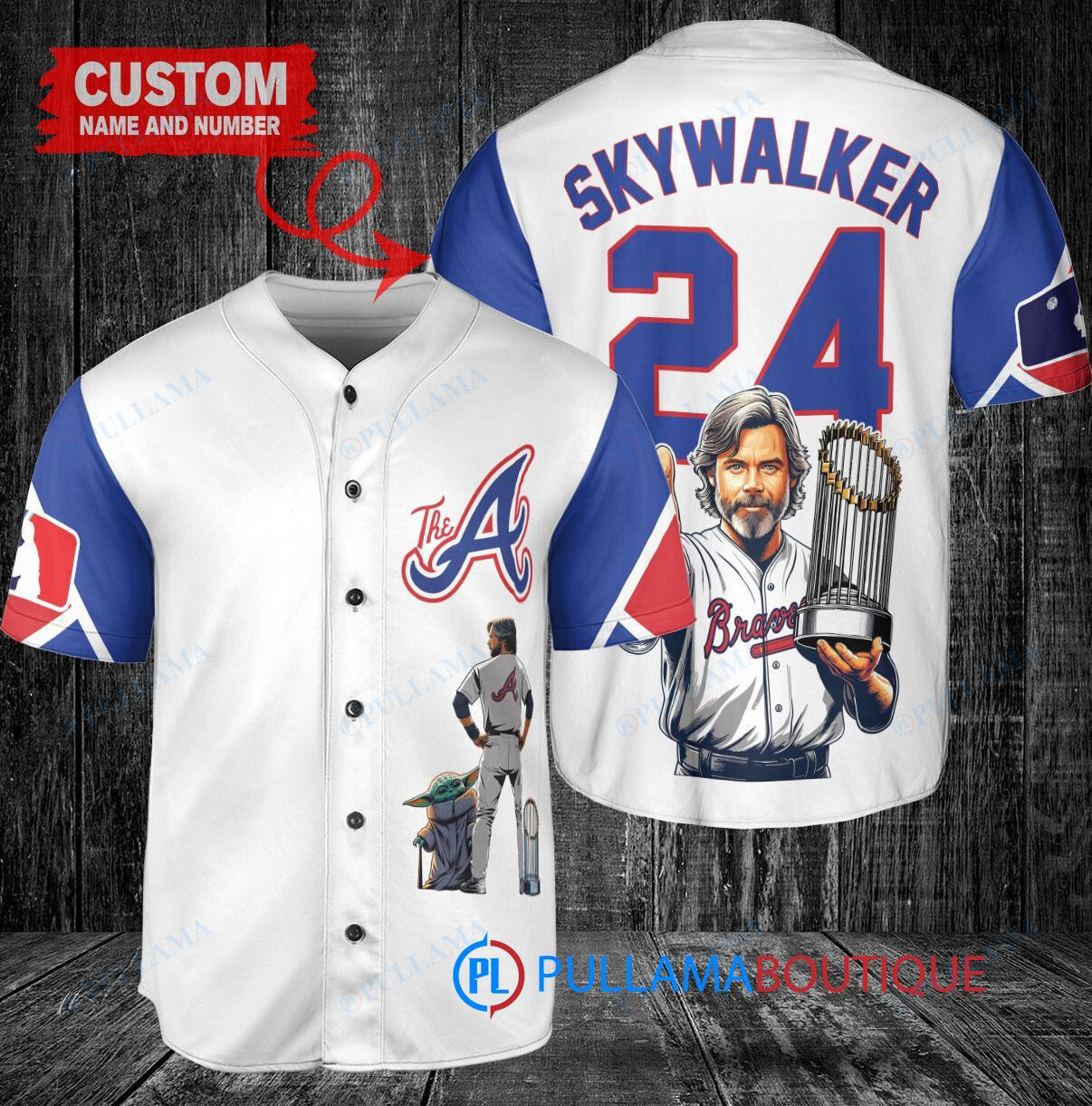 Atlanta Braves x Luke Skywalker Star Wars with Trophy Custom Baseball Jersey White City Connect