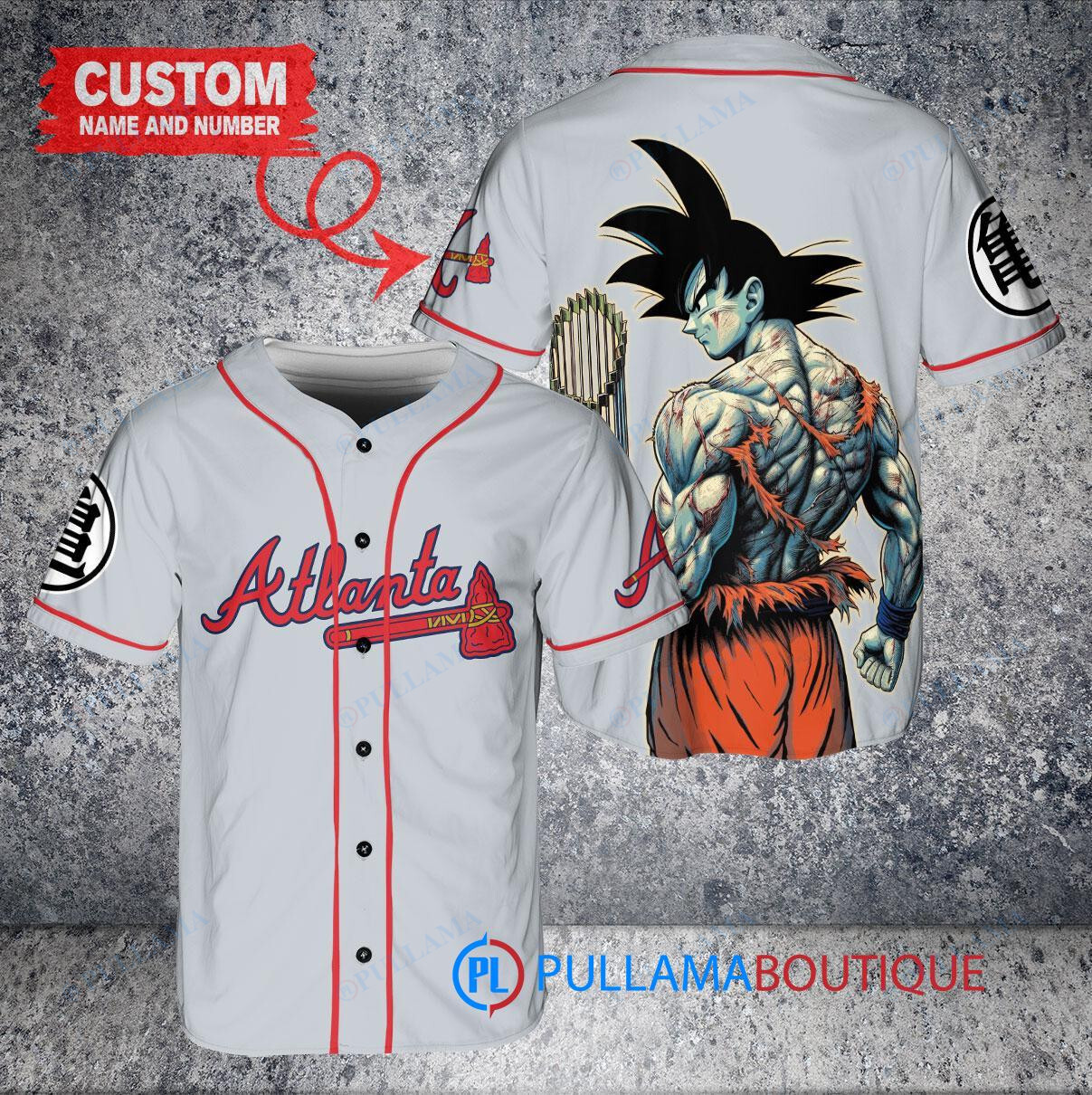 Atlanta Braves x Son Goku Kakarot Super Saiyan Dragon Ball Z with Trophy Baseball Jersey Gray