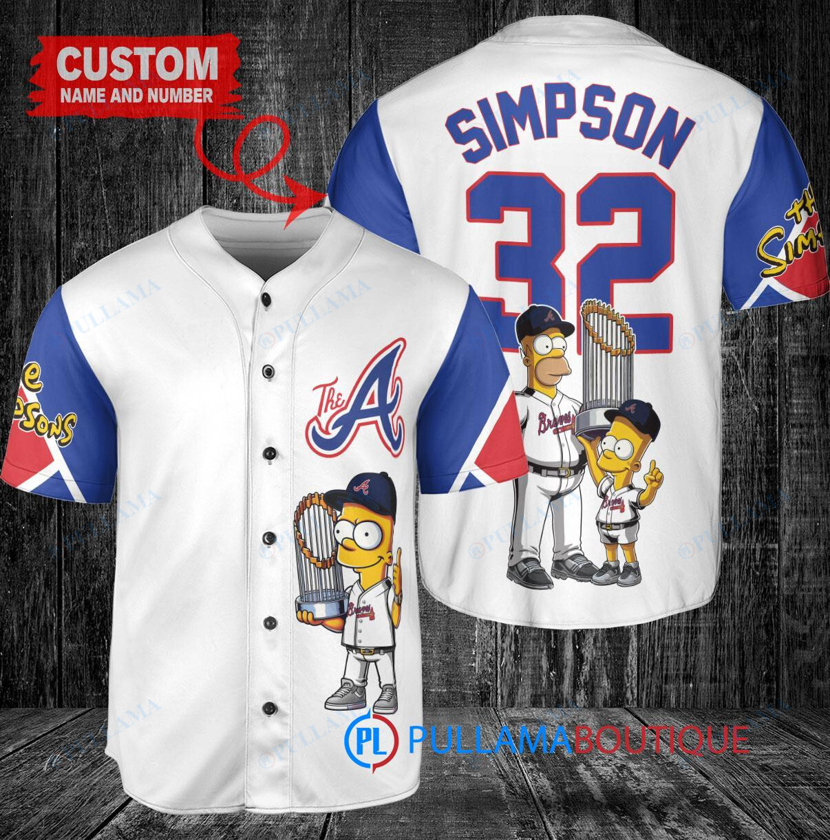 Atlanta Braves x The Simpsons Bart Simpson, Homer Simpson, Lisa Simpson with Trophy Custom Baseball Jersey White City Connect