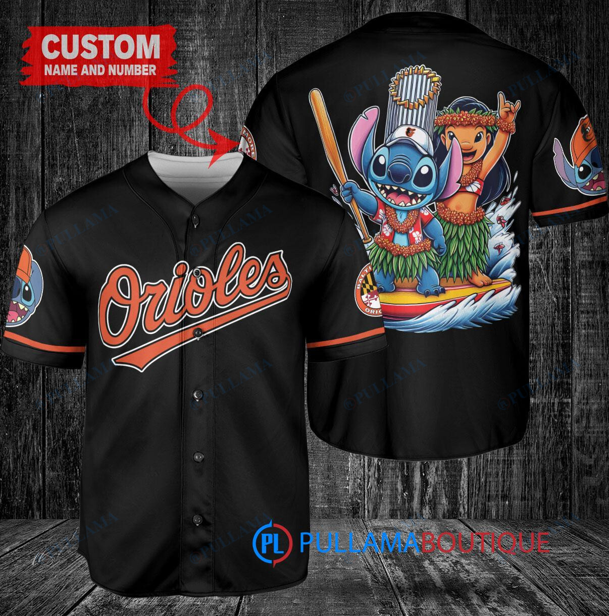 Baltimore Orioles x Lilo & Stitch with Trophy Baseball Jersey Black