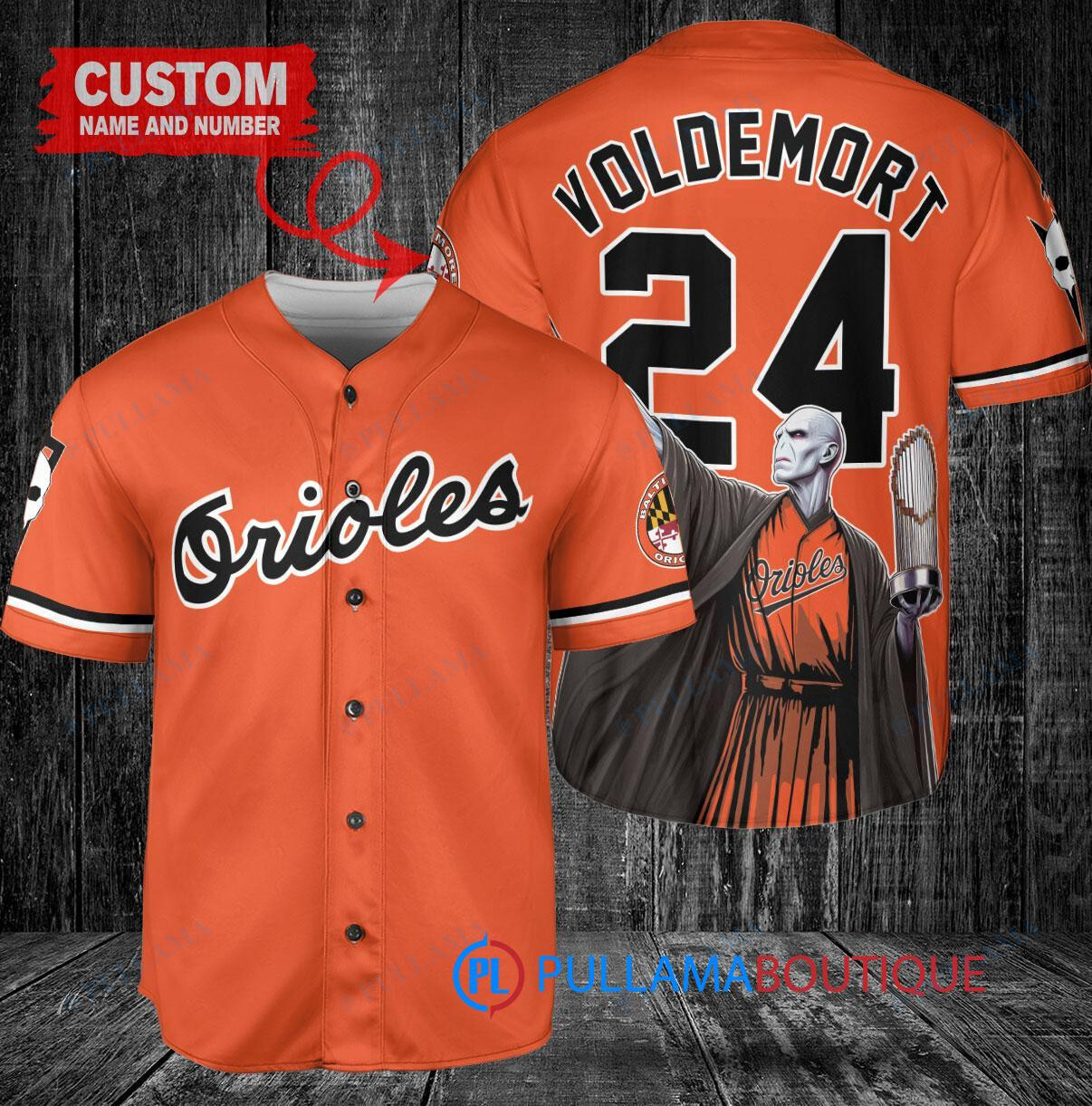 Baltimore Orioles x Lord Voldemort Harry Potter with Trophy Custom Baseball Jersey Orange
