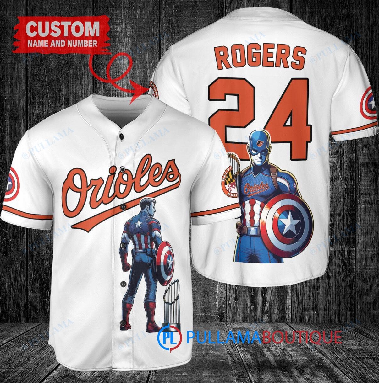 Show your support for the Baltimore Orioles with this unique Marvel Captain America Steve Rogers Baseball Jersey in white. Made with high-quality materials, this jersey features the iconic Captain America shield logo on the front and Rogers’ name and number on the back. Perfect for any Orioles fan or Marvel enthusiast, this jersey is a must-have for your collection.
