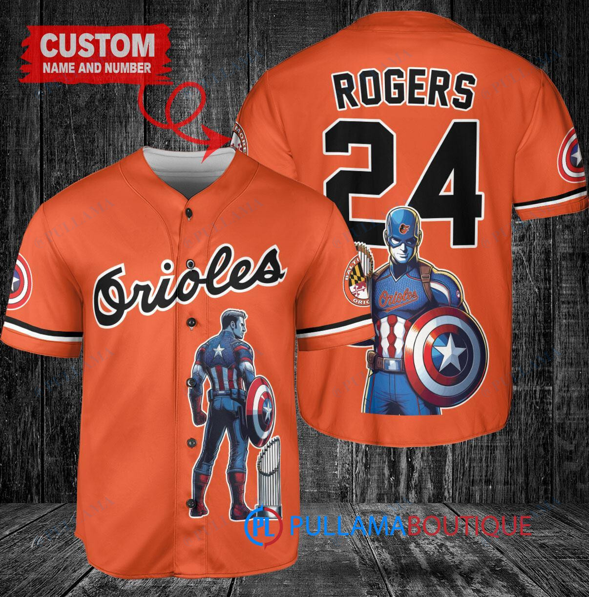 Show your support for the Baltimore Orioles in style with this custom baseball jersey featuring Marvel’s Captain America Steve Rogers. The jersey is designed in a vibrant orange color and includes a trophy emblem, perfect for any fan of the team and the iconic superhero. Made with high-quality materials, this jersey is a must-have for any baseball enthusiast looking to stand out in the crowd.