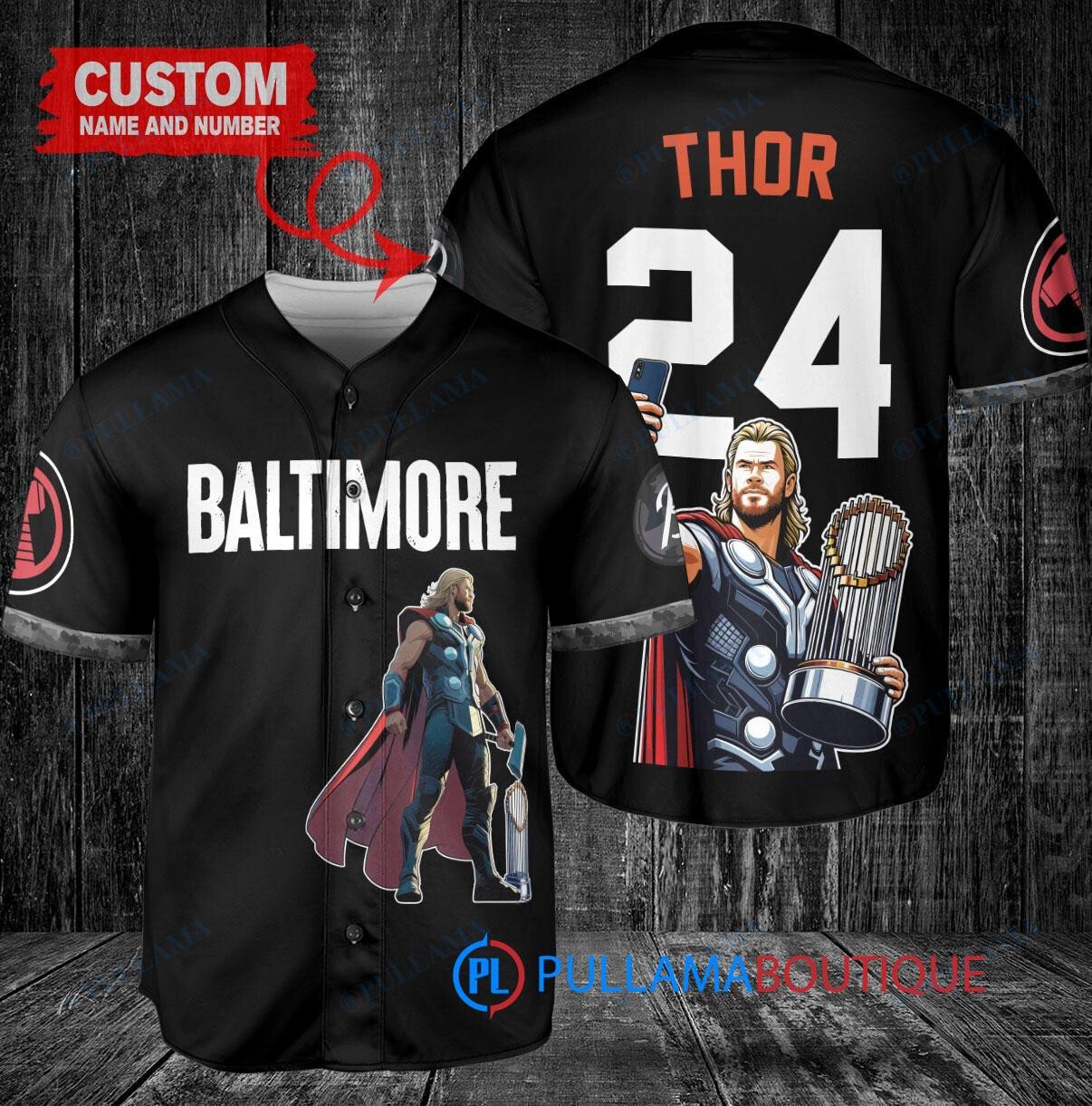 Baltimore Orioles x Thor Marvel with Trophy Custom Baseball Jersey Black City Connect