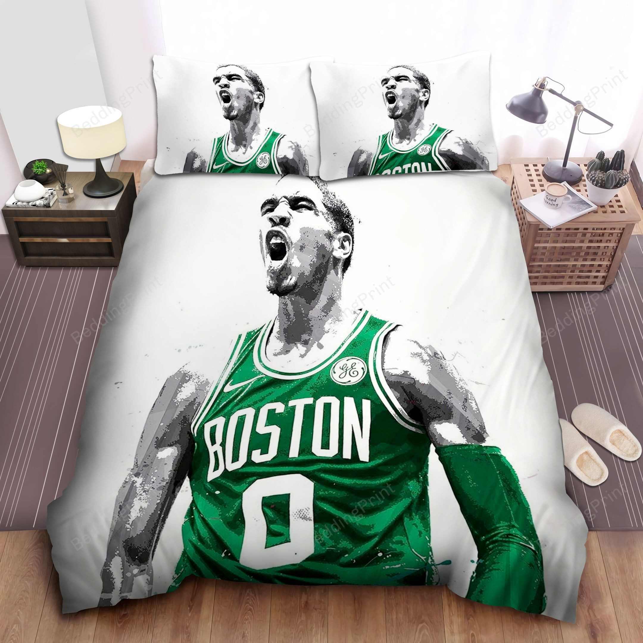 Boston Celtics Jayson Tatum Celebrating Painting Bed Sheet Duvet Cover Bedding Sets