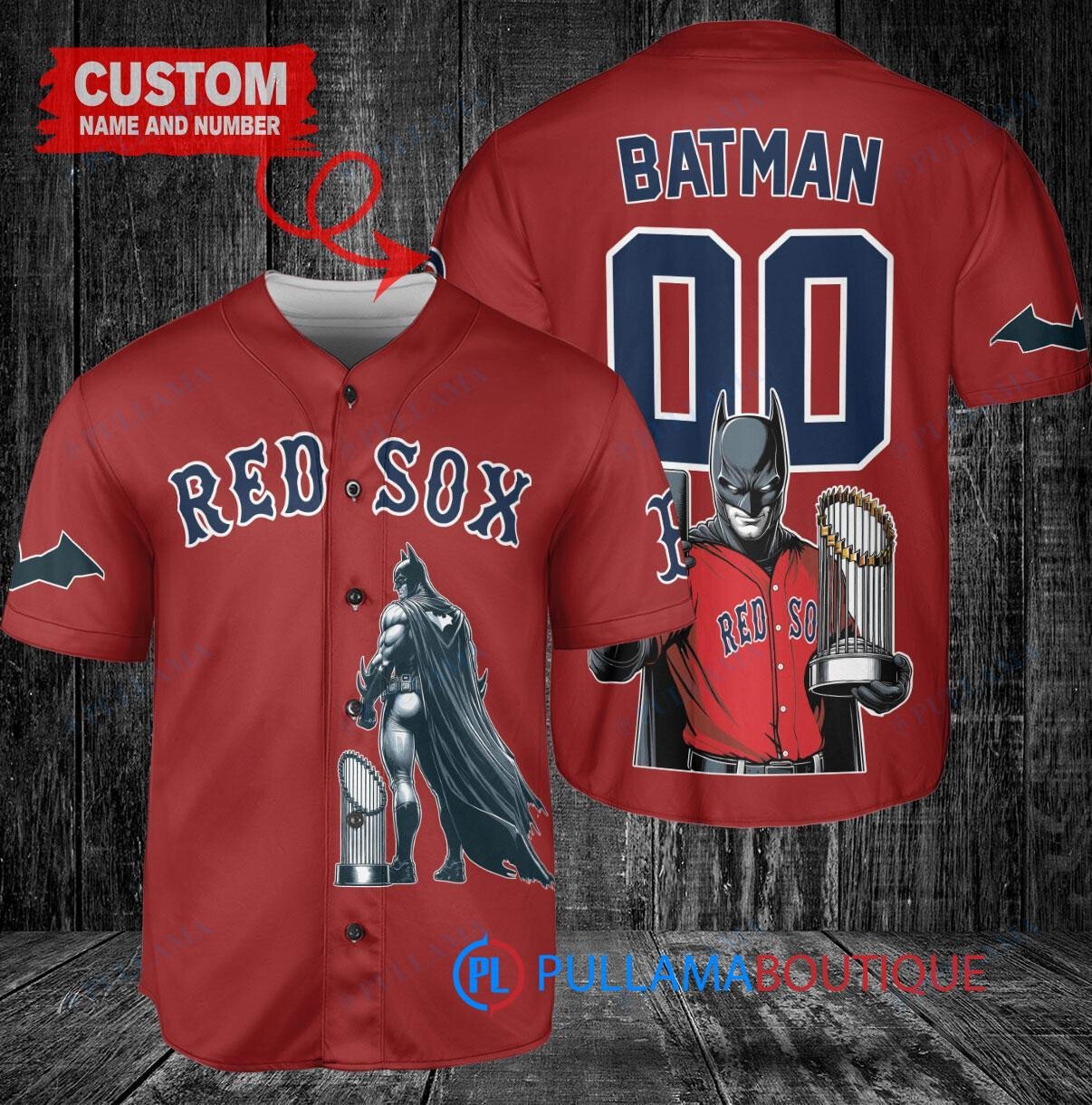 Boston Red Sox x DC Comics Batman The Dark Knight with Trophy Custom Baseball Jersey Red