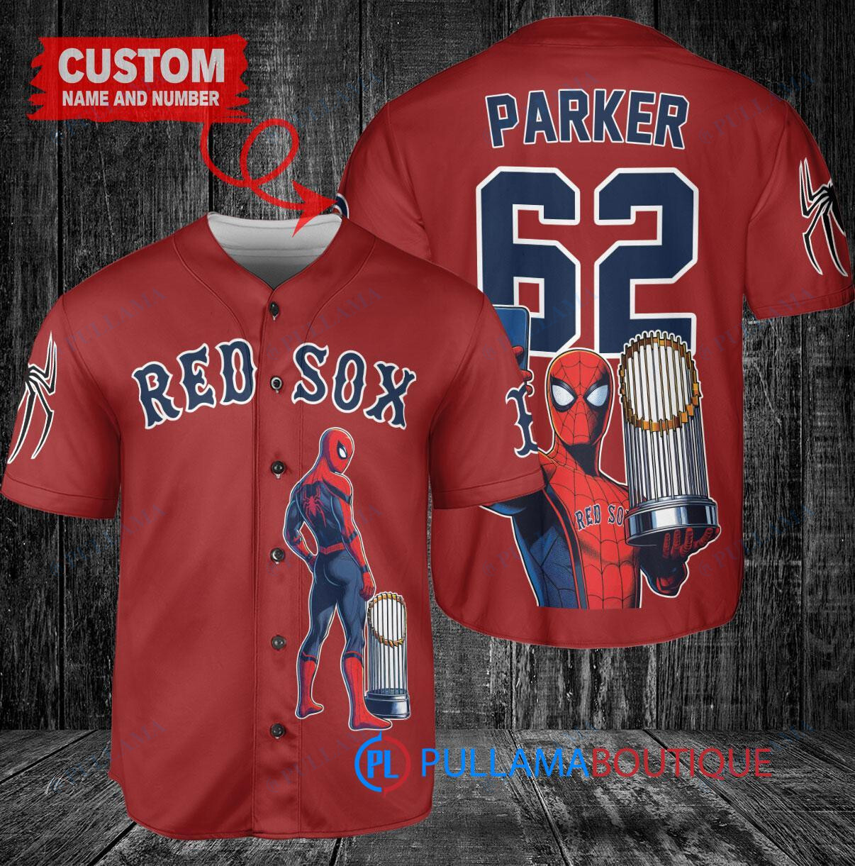Boston Red Sox x Marvel Spiderman with Trophy Custom Baseball Jersey Red