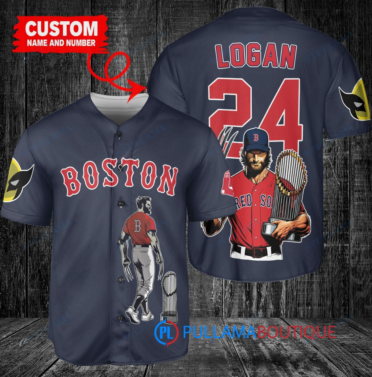Boston Red Sox x Wolverine Logan with Trophy Custom Baseball Jersey Navy