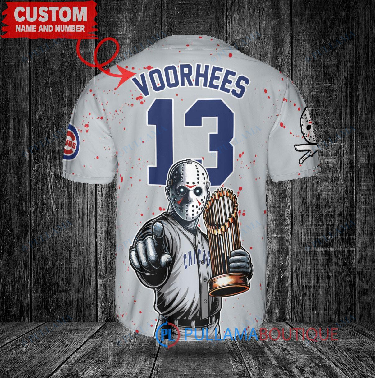 Chicago Cubs Jason Voorhees Halloween World Series Trophy Baseball Jersey Gray