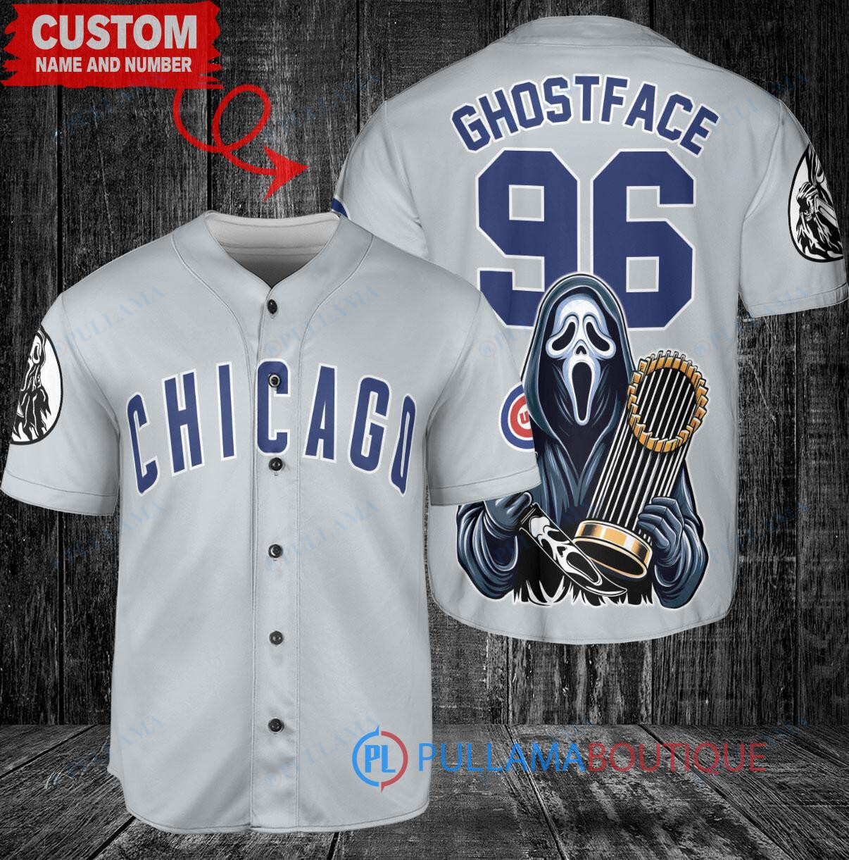 Chicago Cubs x Ghostface Scream World Series Trophy Baseball Jersey Gray