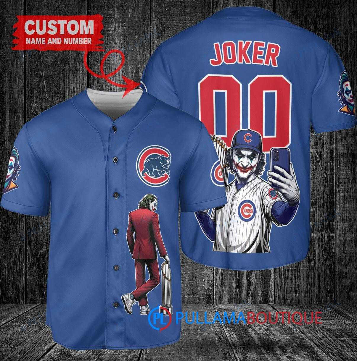 Chicago Cubs x Joker DC Comics with Trophy Custom Baseball Jersey Royal