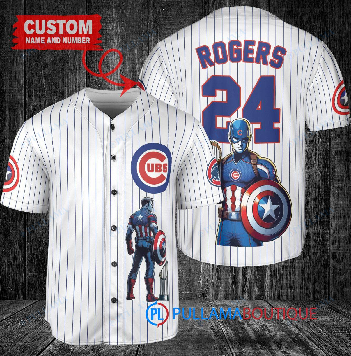 Chicago Cubs x Marvel Captain America Steve Rogers with Trophy Custom Baseball Jersey White
