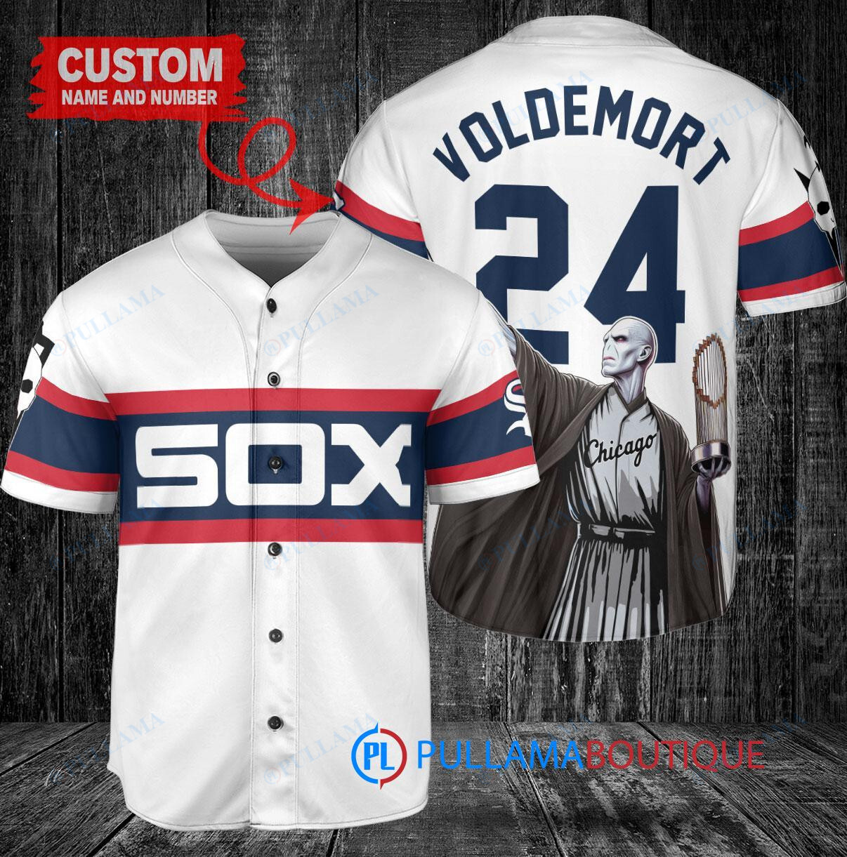 Chicago White Sox x Lord Voldemort Harry Potter with Trophy Custom Baseball Jersey White Stripe