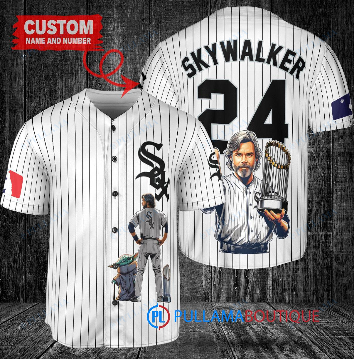 Show off your love for the Chicago White Sox and Star Wars with this custom baseball jersey featuring Luke Skywalker holding a trophy. This unique jersey is perfect for any fan looking to stand out in the crowd. Made with high-quality materials, this jersey is comfortable to wear while showcasing your favorite team and movie franchise. Get ready to hit a home run in style with this one-of-a-kind baseball jersey.