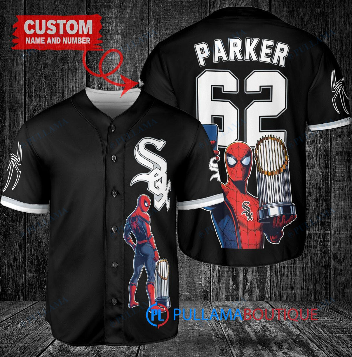Chicago White Sox x Marvel Spiderman with Trophy Custom Baseball Jersey Black
