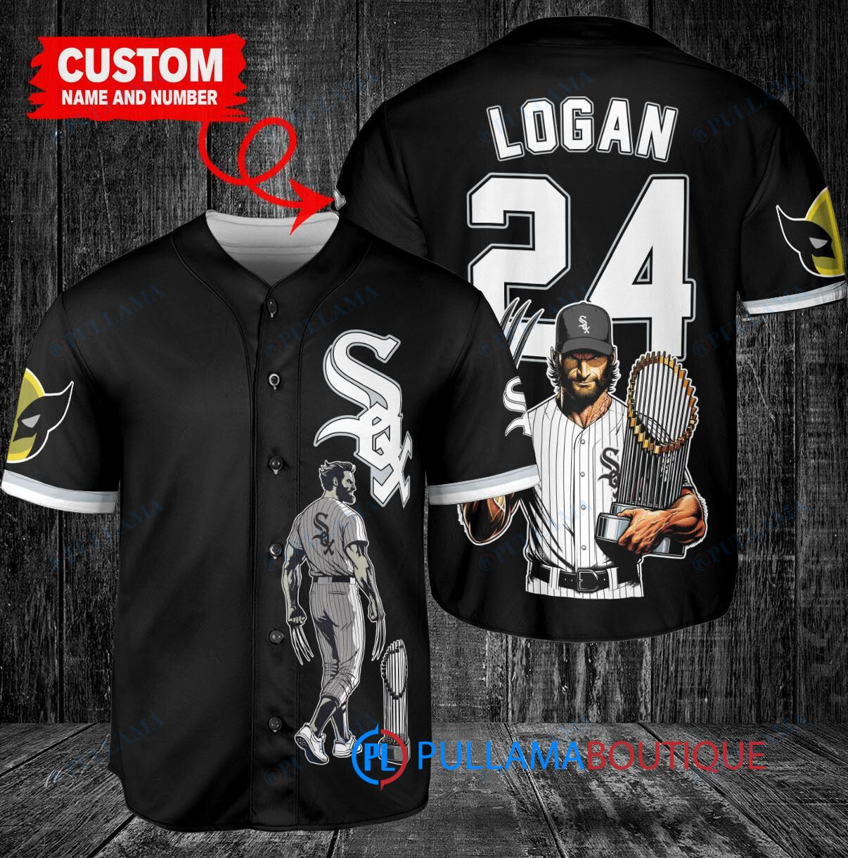 Show off your love for the Chicago White Sox and Wolverine with this custom baseball jersey in black. Featuring Wolverine Logan holding a trophy, this jersey is perfect for any fan looking to stand out in the crowd. Made with high-quality materials, this jersey is comfortable to wear while showing off your unique style. Whether you’re at the game or just hanging out with friends, this jersey is sure to turn heads. Get yours today and show your support for your favorite team and superhero!
