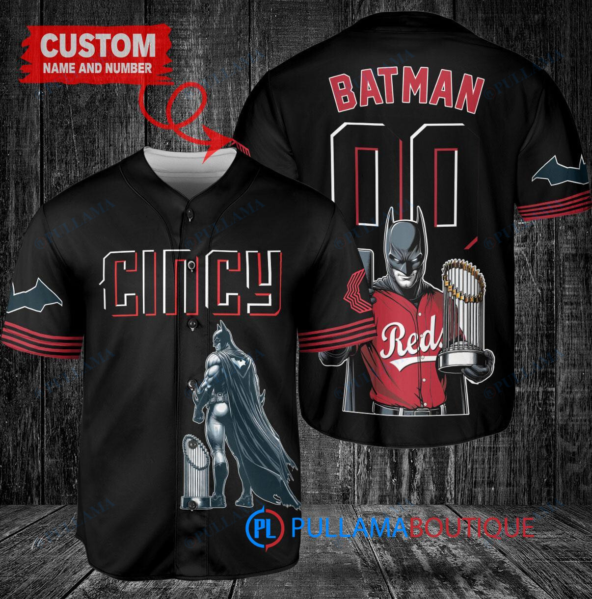 Cincinnati Reds x DC Comics Batman The Dark Knight with Trophy Custom Baseball Jersey Black 2023 City Connect