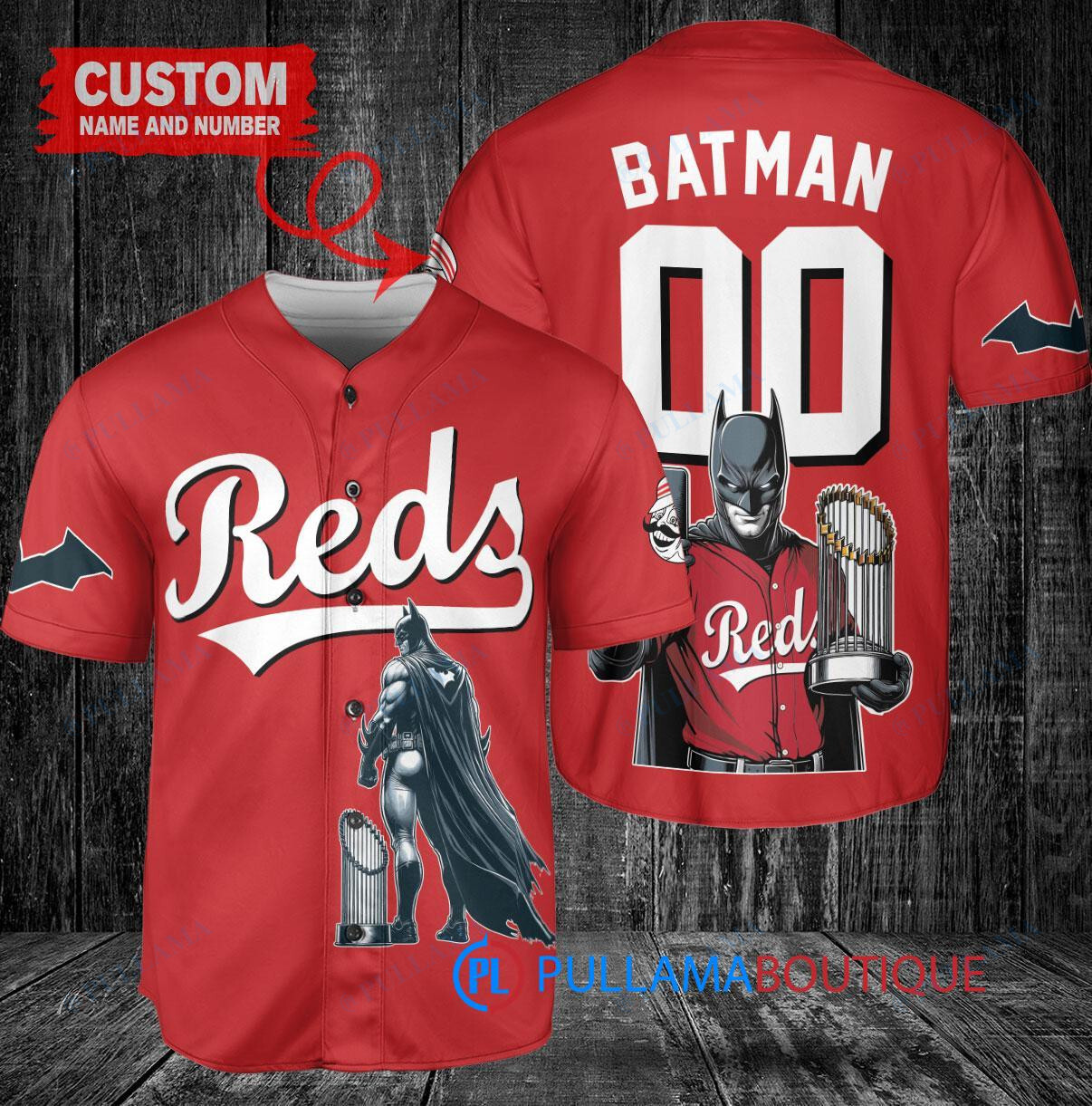 Cincinnati Reds x DC Comics Batman The Dark Knight with Trophy Custom Baseball Jersey Red