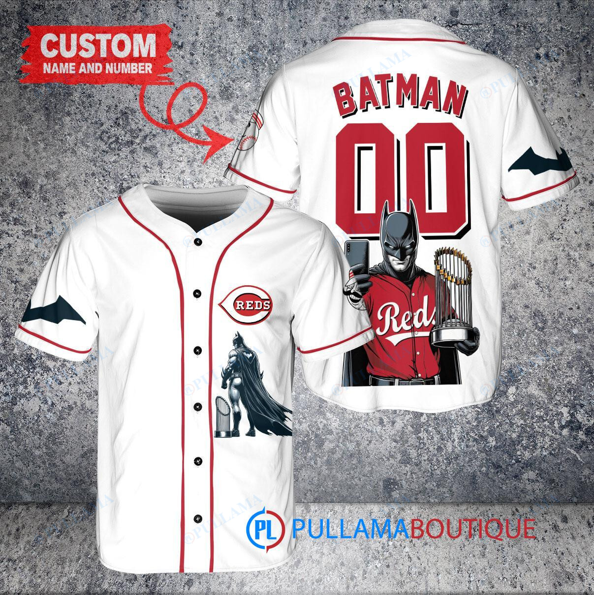 Cincinnati Reds x DC Comics Batman The Dark Knight with Trophy Custom Baseball Jersey White