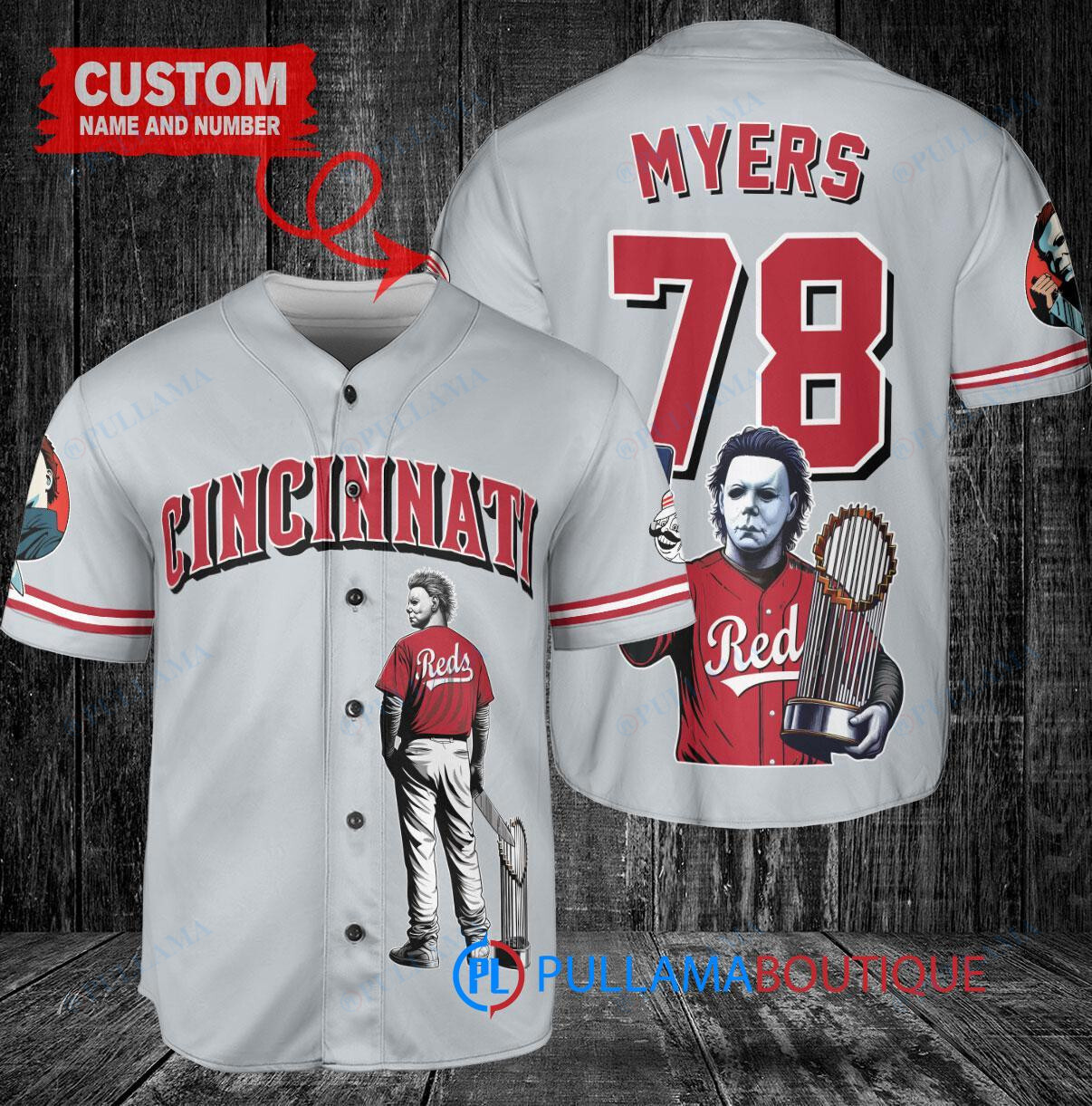 Cincinnati Reds x Halloween Michael Myers with Trophy Custom Baseball Jersey Gray