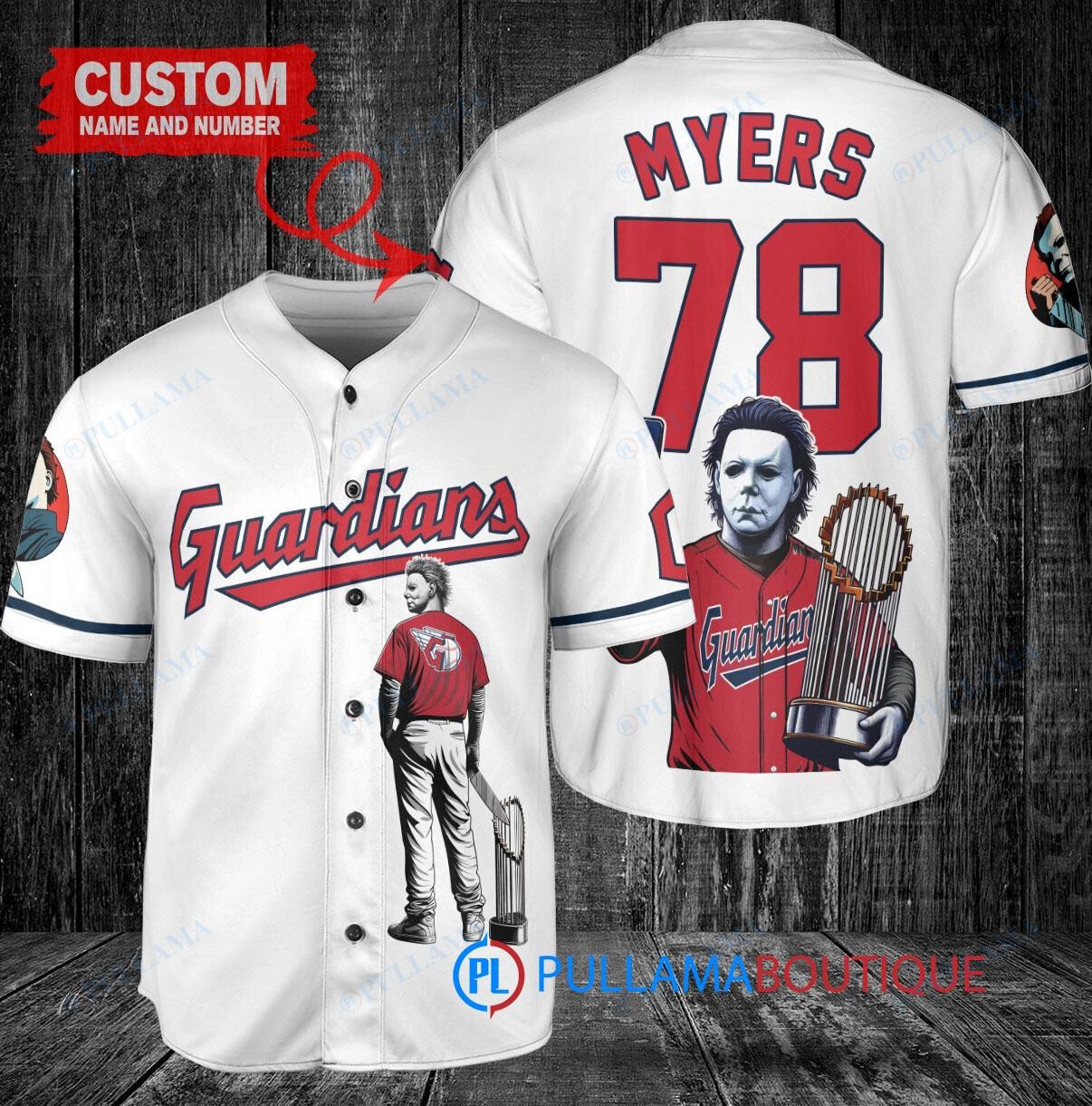 Cleveland Guardians x Halloween Michael Myers with Trophy Custom Baseball Jersey White
