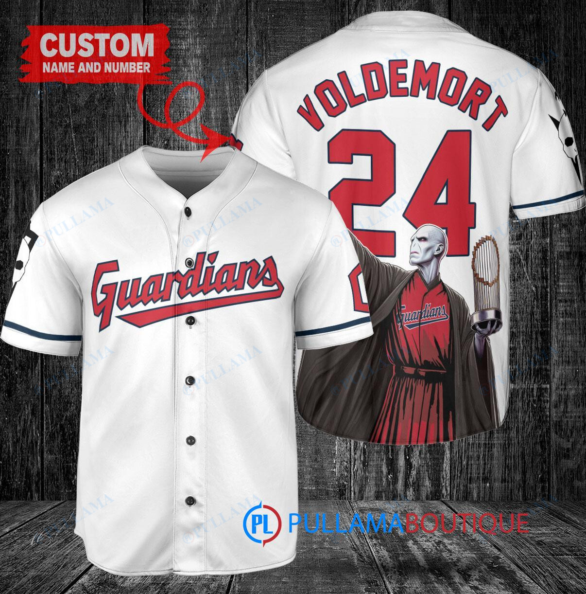 Show off your love for both the Cleveland Guardians and Harry Potter with this custom baseball jersey featuring Lord Voldemort holding a trophy. This white jersey is perfect for any fan looking to stand out in the crowd. Made with high-quality materials, this jersey is a must-have for any sports and Harry Potter enthusiast.
