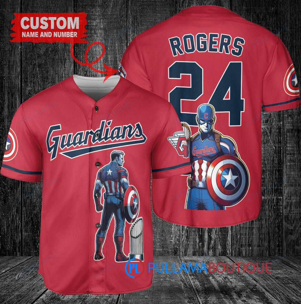 Cleveland Guardians x Marvel Captain America Steve Rogers with Trophy Custom Baseball Jersey Red