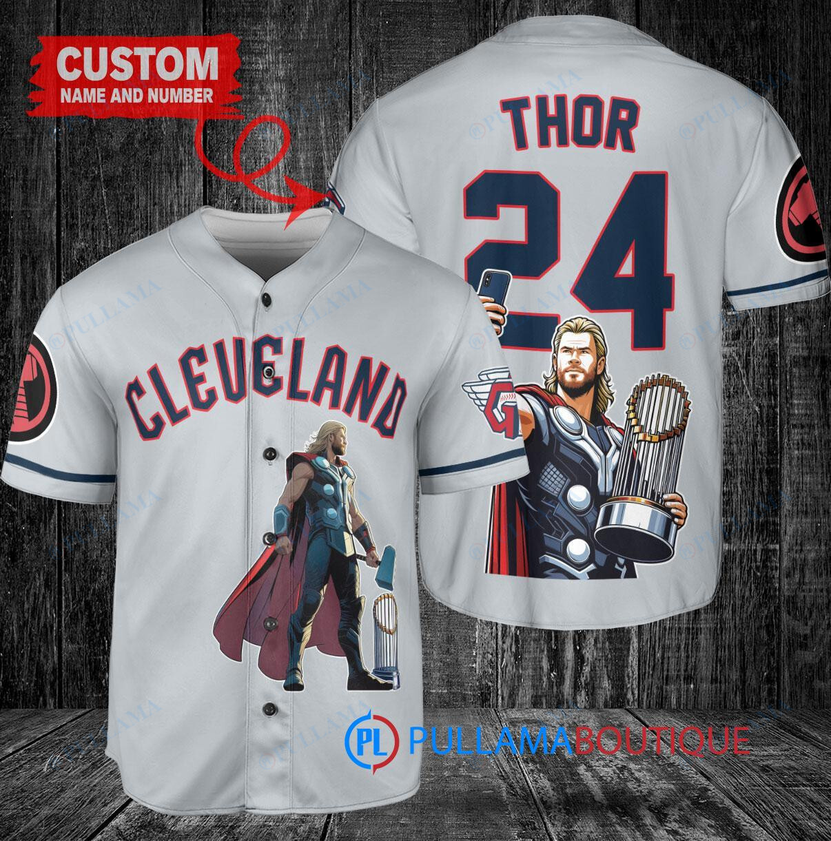 Cleveland Guardians x Thor Marvel with Trophy Custom Baseball Jersey Gray