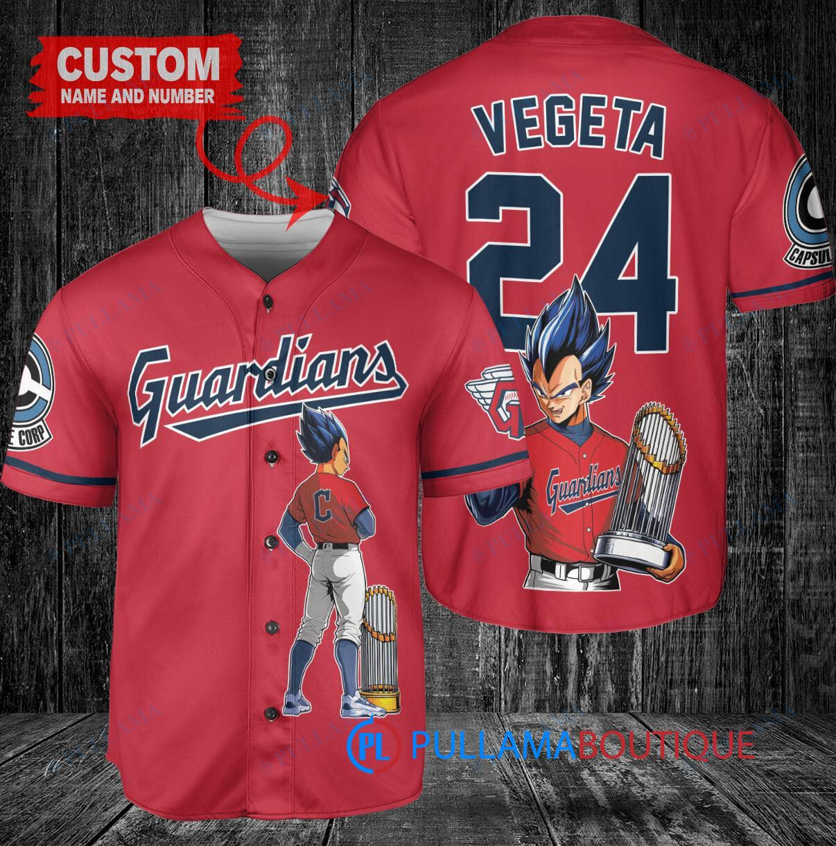 Show off your love for the Cleveland Guardians and Dragon Ball Z with this custom baseball jersey! Featuring Vegeta in Super Saiyan form and holding a trophy, this red jersey is perfect for any fan. Made with high-quality materials, this jersey is comfortable to wear while showing off your unique style. Whether you’re at the game or just hanging out with friends, this jersey is sure to turn heads. Get yours today and elevate your fan gear to the next level!