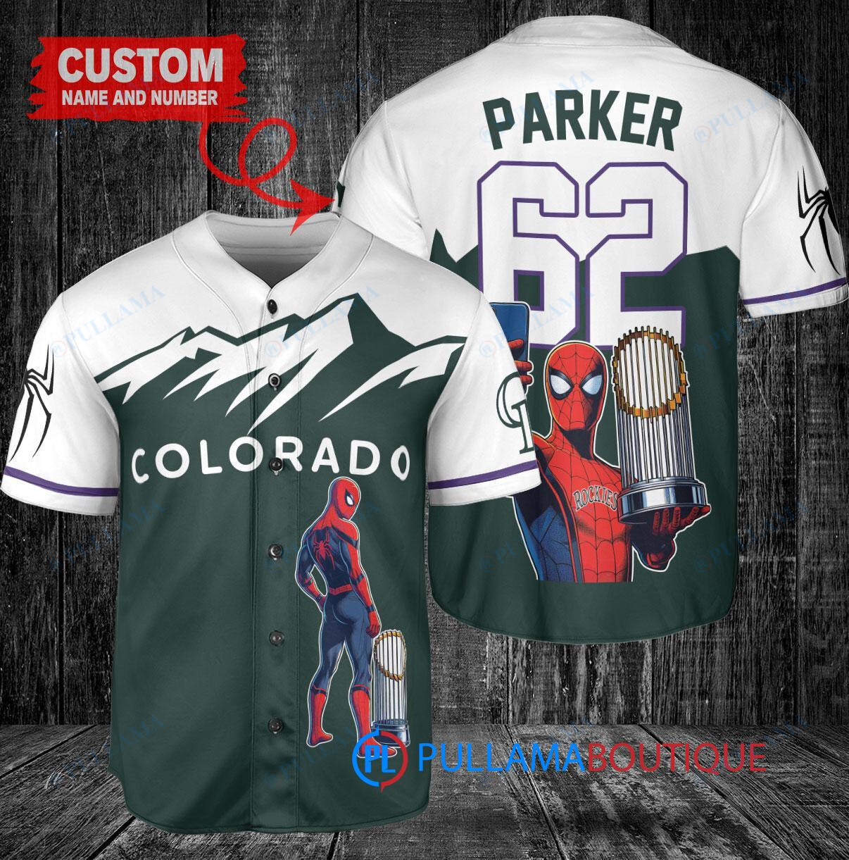 Colorado Rockies x Marvel Spiderman with Trophy Custom Baseball Jersey Green