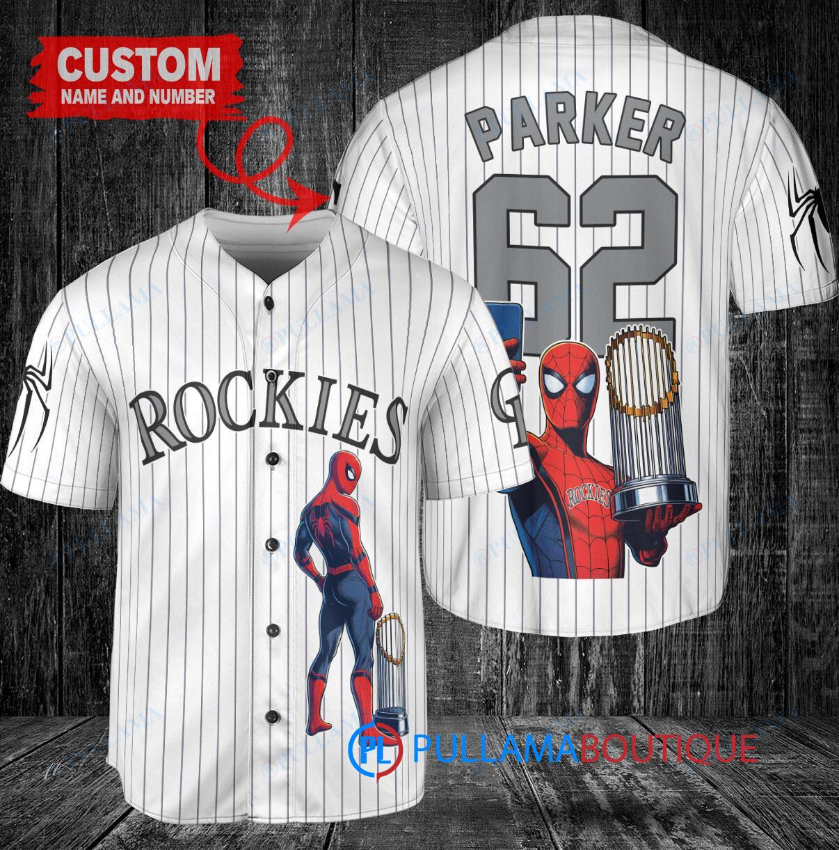 Show off your love for the Colorado Rockies and Marvel’s Spiderman with this custom baseball jersey in white. Featuring a unique design of Spiderman holding a trophy, this jersey is perfect for any fan looking to stand out in the crowd. Made with high-quality materials, this jersey is comfortable to wear while showing off your favorite team and superhero. Get yours today and swing into action with style!