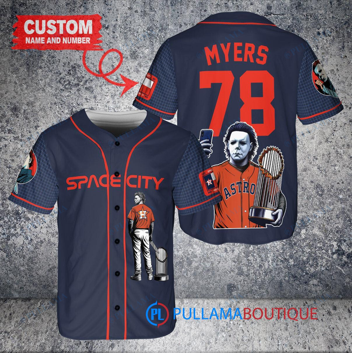 Houston Astros x Halloween Michael Myers with Trophy Custom Baseball Jersey Navy City Connect