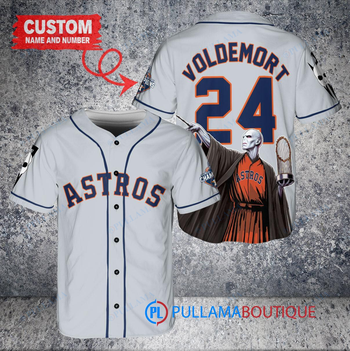 Houston Astros x Lord Voldemort Harry Potter with Trophy Custom Baseball Jersey Gray