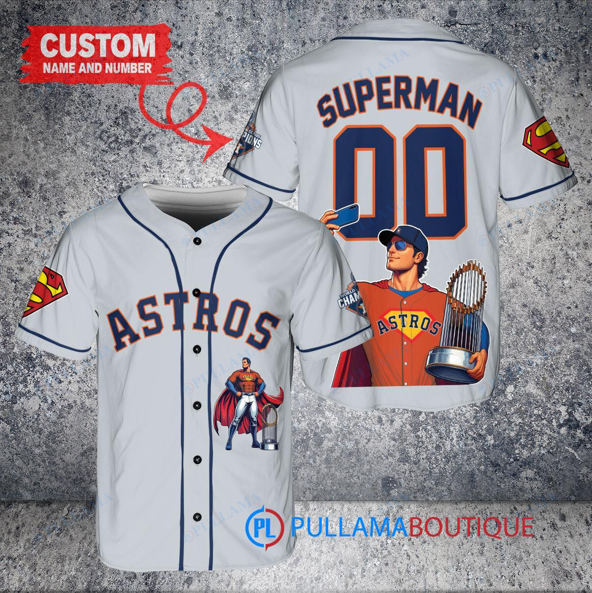 Houston Astros x Superman DC Comics with Trophy Custom Baseball Jersey Gray