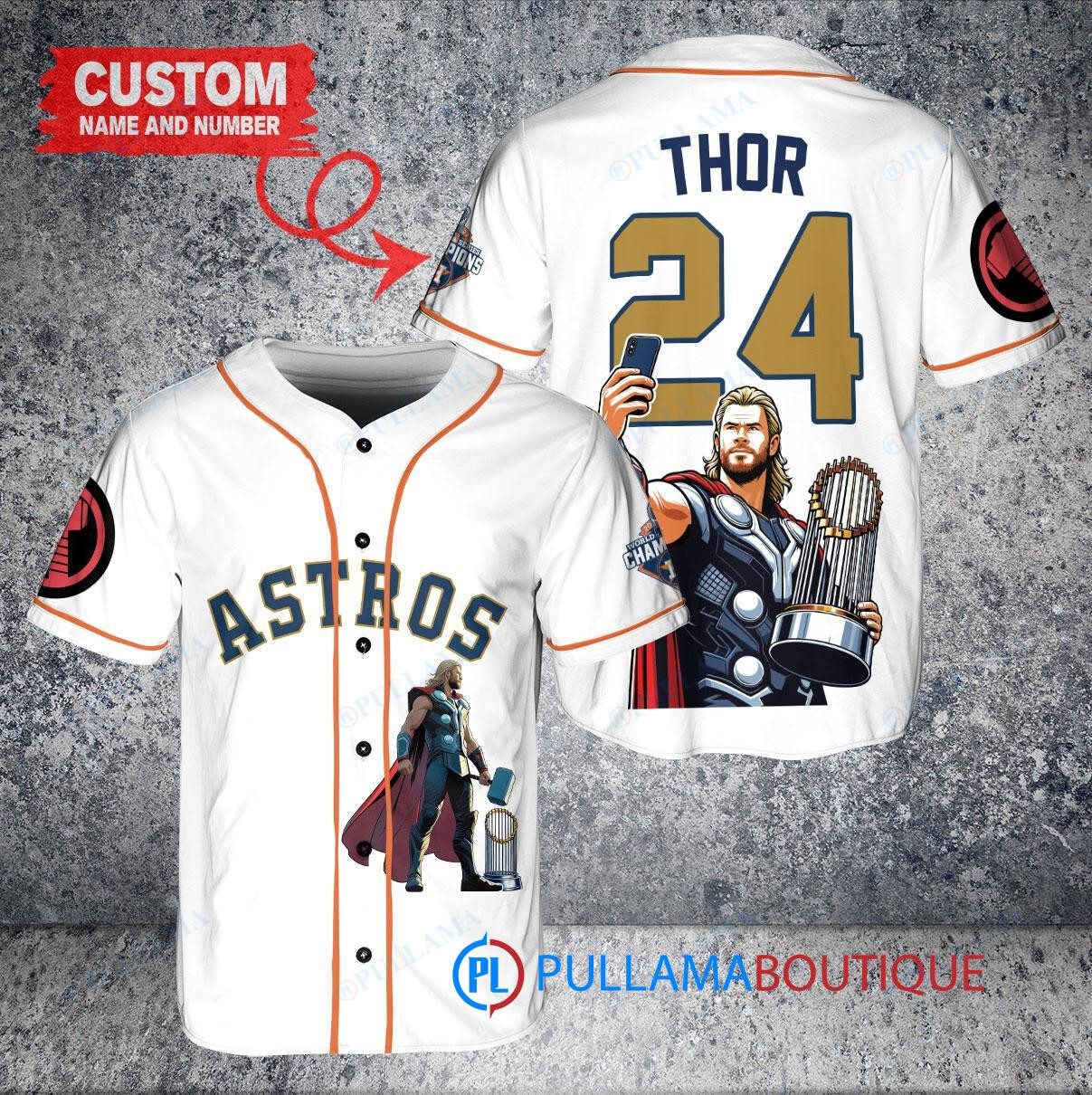 Houston Astros x Thor Marvel with Trophy Custom Baseball Jersey White