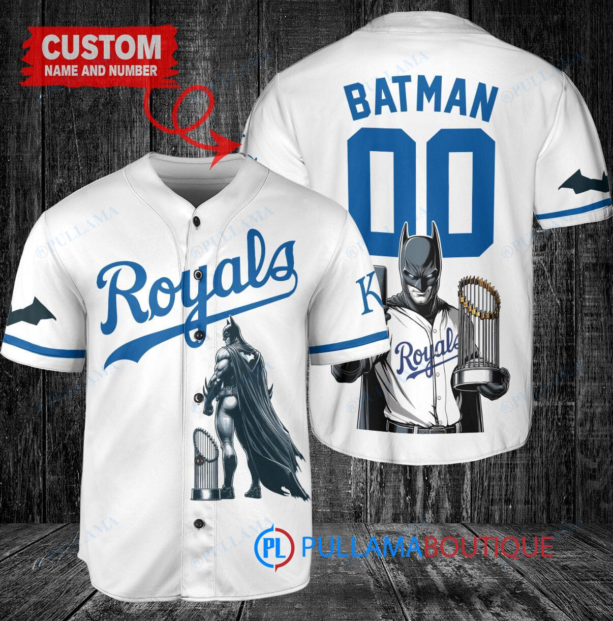 Kansas City Royals x DC Comics Batman The Dark Knight with Trophy Custom Baseball Jersey White