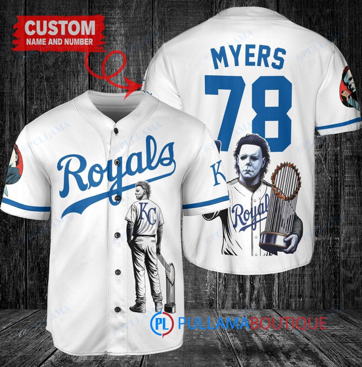 Kansas City Royals x Halloween Michael Myers with Trophy Custom Baseball Jersey White