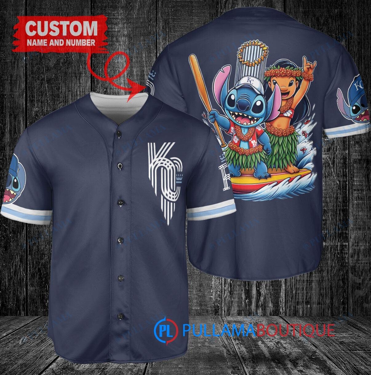 Show off your love for the Kansas City Royals and Disney’s Lilo & Stitch with this unique baseball jersey in navy. Featuring a trophy design, this jersey is perfect for any fan looking to stand out in the crowd. Made with high-quality materials, this jersey is comfortable to wear while showing off your team spirit. Perfect for game days or casual wear, this jersey is a must-have for any true fan.