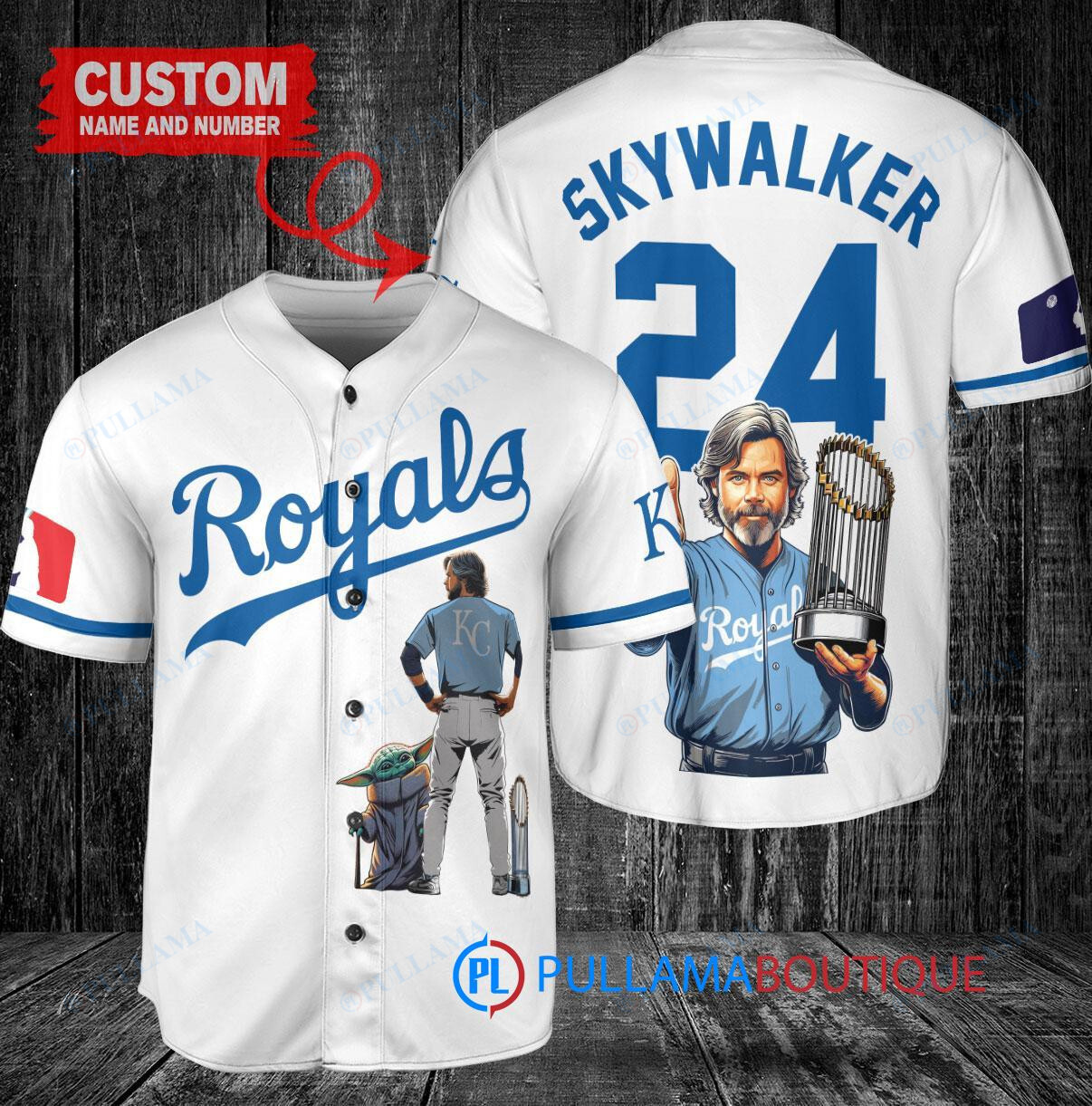 Kansas City Royals x Luke Skywalker Star Wars with Trophy Custom Baseball Jersey White