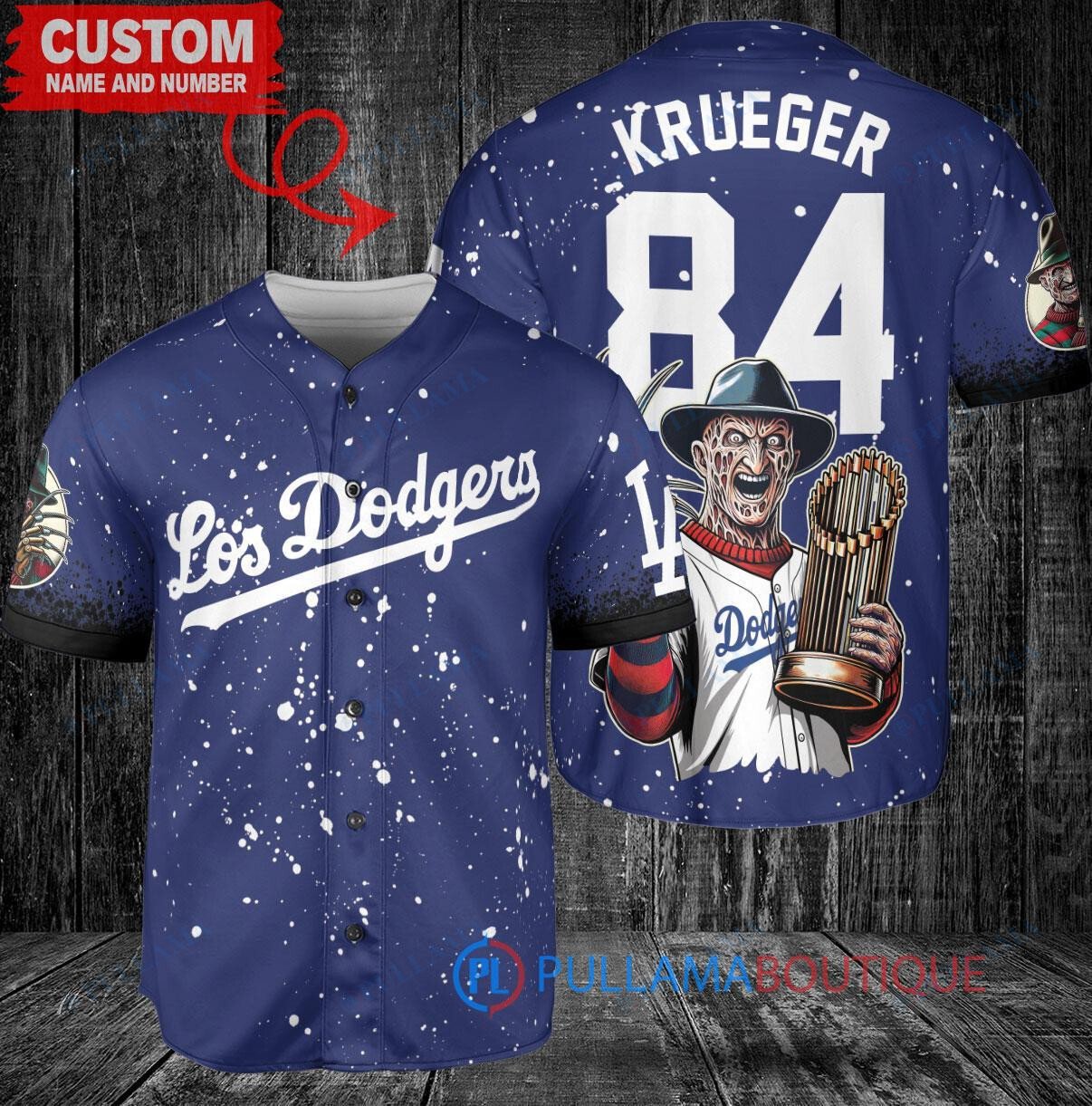 LA Dodgers Freddy Krueger Halloween World Series Trophy Baseball Jersey