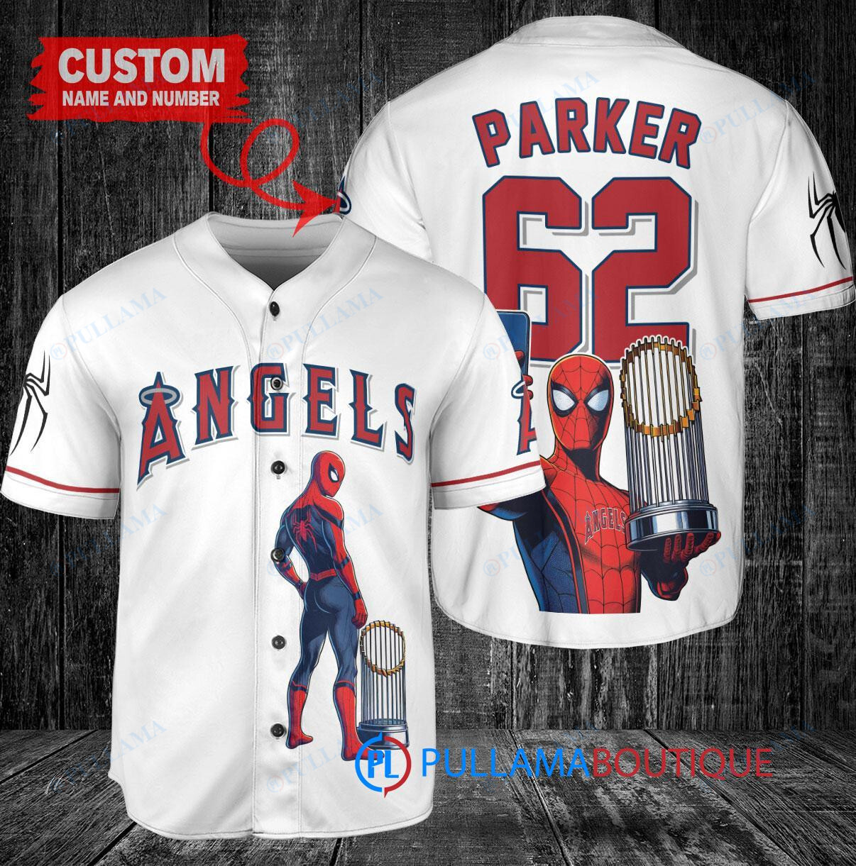 Los Angeles Angels x Marvel Spiderman with Trophy Custom Baseball Jersey White