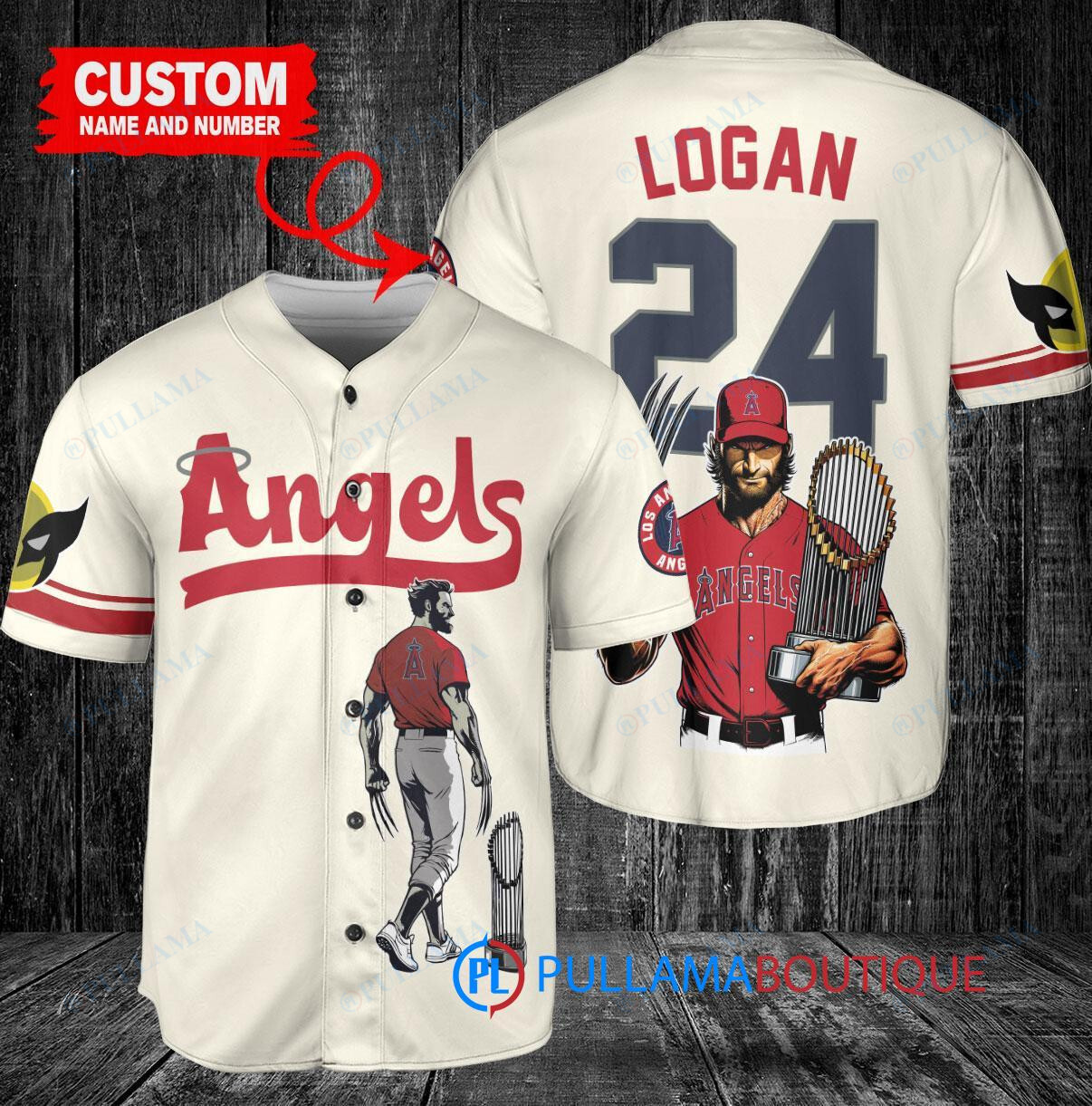 Show off your love for the Los Angeles Angels and Wolverine with this custom baseball jersey in cream color. The jersey features a unique design of Wolverine Logan holding a trophy, perfect for fans of both the team and the iconic superhero. Made with high-quality materials, this jersey is comfortable to wear while showing off your fandom in style. Perfect for game days or casual wear, this jersey is a must-have for any Angels and Wolverine fan.