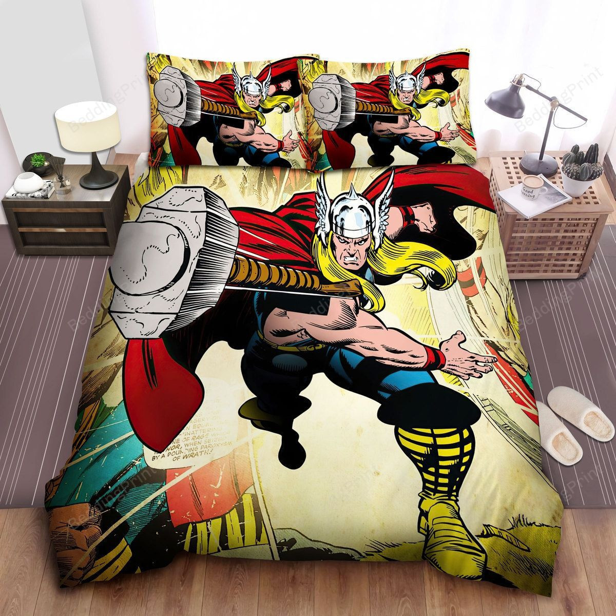 Marvel Thor Throwing His Hammer In Comic Bed Sheets Duvet Cover Bedding Sets