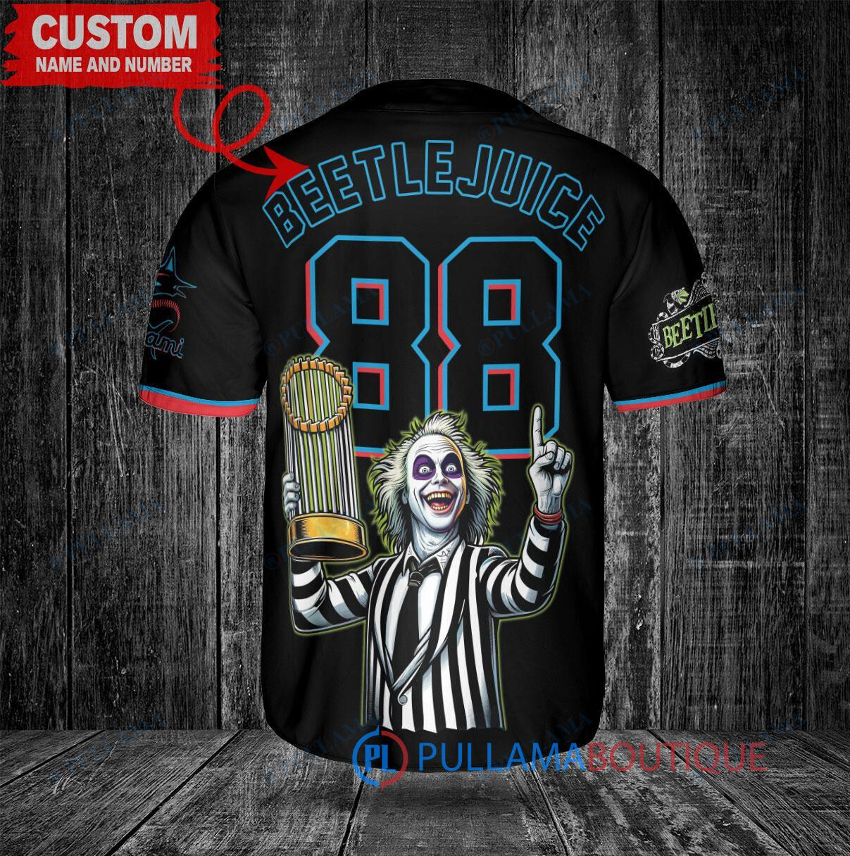 Miami Marlins Beetlejuice Halloween World Series Trophy Baseball Jersey Black